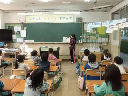 レッツ読み聞かせの第1回目の今日は,谷口先生から「いいもの みーつけた」という絵本を読んでもらいました。みんな楽しんで聞いていました。