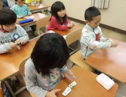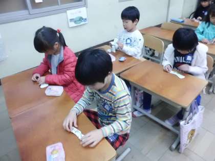 繰り上がりのたしざんの学習をしています。計算カードを使って練習しています。みんな少しでも速く解けるようがんばっています。計算が得意になれるように練習を続けていきます。