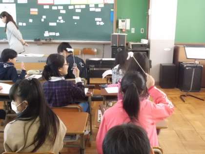 オーケストラ等の鑑賞の曲で指揮棒を使って,曲の速さや特徴をつかむ学習をしました。子ども達は指揮棒で曲を感じ取りながら,指揮の難しさも感じていました。