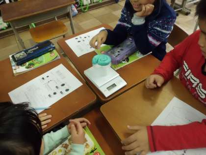 ものの重さをはかるときに,はかりを使うとよいことを,前の時間に学習し,身近にあるいろいろなものの重さを実際にはかってみました。
