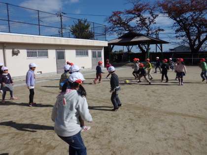 遊び係の子ども達が中心になって,クラス遊びを進めています。この日はドッジボールを行いました。楽しんでいました。