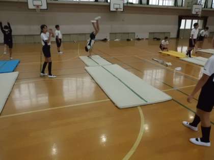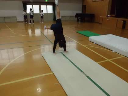 体育科の学習で「マット運動」をしています。どんどん自分の課題の技に挑戦をしています。また,「側方倒立回転」や「ロンダート」に挑戦する子が多くいます。また,安全に気を付けながら出来る技を増やせるよう挑戦していってほしいです。