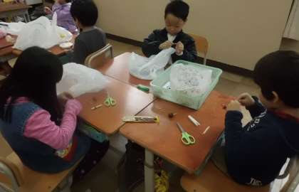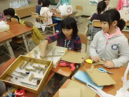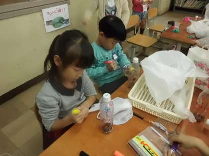 でき上がってくると,できたおもちゃで遊んで確かめながら作っています。でき上がってみんなで遊ぶのが楽しみです。