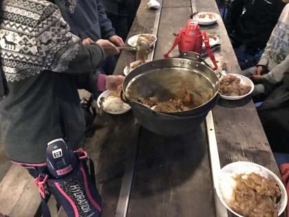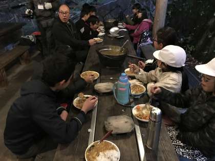 第1回の野外炊事,仲間と協力して素晴らしい出来栄えとなったようです。画面で見ても美味しそうなカレーライスですね。きっと最高の味がしたでしょう!