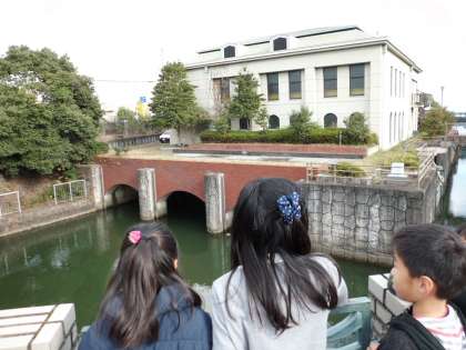 浜大津まで行き,琵琶湖疏水の取り入れ口を見学しました。
