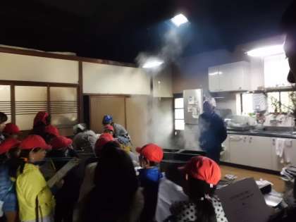 煙が出てくる様子を目の前で見ることができ,昔の暮らしの様子を実際に体感することができました。インタビューにも親切にに答えて頂き,昔の人の知恵の素晴らしさにびっくりしていましたよ。