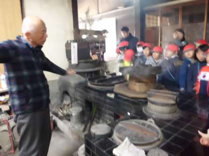 地域の方の家に寄せていただき,そこで実物のおくどさん(おかまさん)を見せてもらいました。