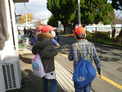 今日は,『高齢者総合福祉施設まほろば』に町探検に出かけました。ちょっぴり風が強くて寒かったのですが,歩いていると体がぽかぽかしてきて・・・着いたころには上着はいらな〜いと元気いっぱいの子どもたち。さあ,これからおじいちゃん・おばあちゃんに会いに行くよ♪