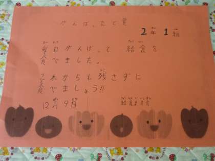 今週は,『パクパク週間』でした。初日は,体調がよくない子が多く,パクパク賞はもらえなかったのですが,残りの4日間はおいしく完食することができました。今回は,『牛乳パックきれい賞』の取組みもあったので,いつも以上に牛乳をしっかりと飲みきることを心がけて頑張りました。これからも,給食を作ってくださっている方や,携わってくださっている方に感謝の気持ちを忘れず,毎日パクパク賞を目指していきたいです!