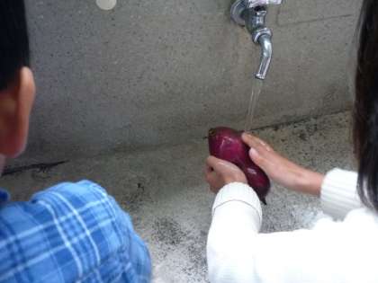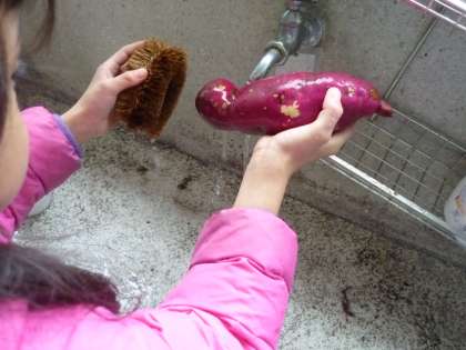 『おいもパーティ』に向けて,おいもを洗いました。1年生にも優しく声をかける姿や,冷たい水でも一生懸命に洗う姿はステキでした。