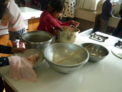 パーティの後は,使ったお鍋や用具をきれいに洗いました。どの子も手際よく,洗ったり拭いたり・・・上手に後片付けをすることができました。使った後もピカピカにして,気持ちよく終えることができました。この後の給食もいつも通り完食!!さすが2年1組です。