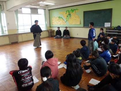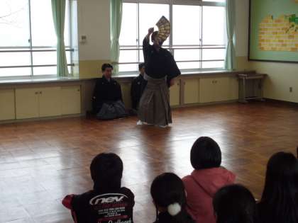 講師の方々に能楽を少しだけ観させていただきました。迫力ある演技に圧倒されました。最後の質問タイムでは,能楽と狂言の違いについても教わりました。
