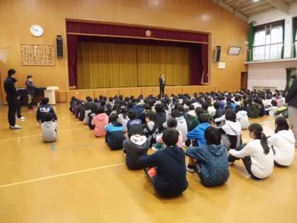 今日は今年最後の朝会がありました。校長先生からみんなのことで,うれしいことが2つあるというお話がありました。一つ目は掃除をしっかり頑張る人が増えていること。二つ目は,「ありがとう」を言える人が増えているということだそうです。特に二つ目は,校長先生が掃除をしていると「校長先生!きれいにしていただいて,ありがとうございます」と言われることが多いそうです。最近校長先生は,「ありがとう」を言うと自分が幸せになったと思うそうです。冬休み,身近な人や,地域の人,親戚の人などにたくさん「ありがとう」を言えるようになってくださいというお話がありました。その他,休み中交通ルールを守り,規則正しい生活を送り元気に1月10日に会いましょうと話されました。ご家庭でも,学校より配布致しました「冬休みのくらし」を参考に,冬休み中の過ごし方について話し合っていただきますようお願い申し上げます。どうぞ良いお年をお迎えください。