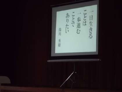 今日は朝会がありました。校長先生から新年の挨拶の後,「今日,みんなが揃ってスタートできたことが本当に嬉しいです。」と話されました。新年に当たり,2つのお話がありました。1つ目は京都出身ノーベル賞受賞者湯川秀樹さんの「一日生きることは,一歩進むことでありたい。」と言う言葉について話されました。2つ目は,テレビコマーシャルから「やってみよう」について,「誰でも初めてすることや,苦手なことにはなかなか挑戦できないもの,でもそんな時こそ『やってみよう』という気持ち大切なのではないか。」と言うお話がありました。最後に学校のホームぺージから各学年の活動を紹介してくださりました。