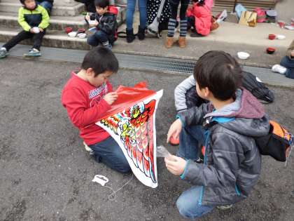 田んぼの方では凧揚げも楽しんでいました。