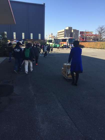 バスで昼食をとる場所まで移動します。