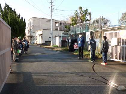 PTAの方と本部委員が登校時,北門と南門で「あいさつ運動」をしました。
