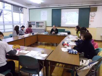6日(月)大原野小学校で大原野学区にある大原野幼稚園・大原野子ども園・上里竹の子保育園の職員が集まり第一回の合同研修会をしました。大原野小学校岩田校長より大原野小学校での様々な取組を紹介した後,それぞれの園の取組や課題を交流しました。今までも学校とそれぞれの園とお話させていただく機会はありましたが,一同に集まり,同じ話題で話す機会はありませんでした。短時間でしたが今までなかった交流ができ,有意義な時間となりました。