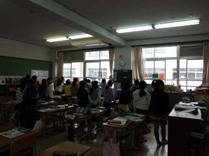 歌が大好きで,すぐに覚える3年生。今日はそれを6年生に聞こえるように歌いました!