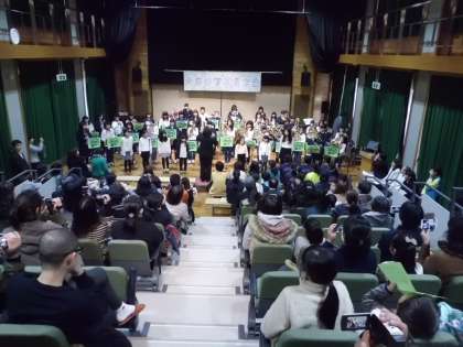 2月11日(土)大原野中学校コミュニティホールで大原野学園音楽会がありました。上里小学校ミュージックバンド,大原野中学校吹奏楽部,大原野小学校ミュージック部,「とりしあんて」が出演し,日頃の成果を発表しました。また,今年は3校の合同演奏があり,2月4日(土)に合同練習をするなど,音楽を通しての交流がさらに進みました。