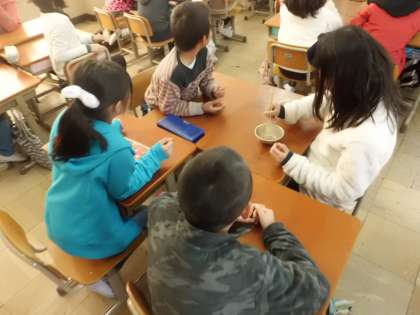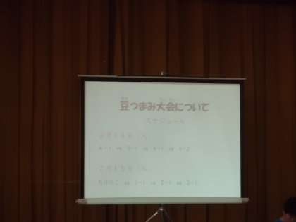 給食集会では,明日の豆つまみ大会についての説明もありました。