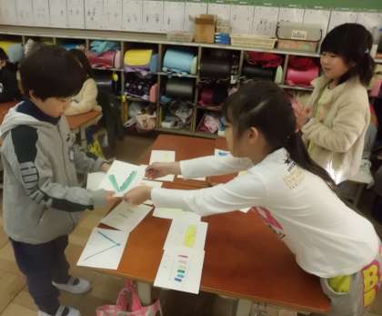 商品やお店の看板を作り,お客さんが来たらどのように話すのかを考えて用意ができました。いよいよお店屋さんごっこ開始です。「いらしゃい。」「これがおすすめの商品です。」「これは使いやすいです。」「おいしいですよ。」など声をかけ楽しそうに売ったり買ったりしていました。売り切れると「全部売れた!」と喜んでいました。