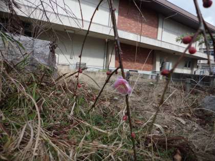 先日朝会で,校長先生がお話されていた梅の木に,かわいい花が咲いていました!