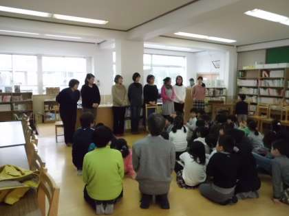 2年生の「おはなしでてこい」は今日で最終回となりました。月一回,読書教養委員さんと有志スタッフの方に図書室で読み聞かせをしていただきました。読んでいただく本にも毎回工夫があり,様々なジャンルから選んでいただいています。今日は英語の絵本があり,みんなで大きな声で「オープン!」と言いながらお話を聞きました。最後に2年生から,2年間お世話になったお礼を言いました。スタッフの方からも「みんなが6年生になった時また会いましょう。大きくなったみなさんに会うのを楽しみにしています」とお話がありました。