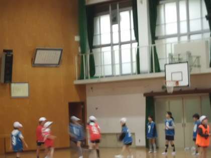 体育館でしました。バスケットゴールを使って