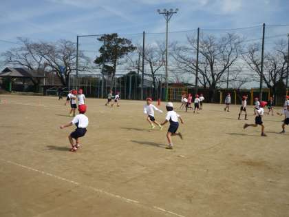 今日は,体育の時間に『おにあそび』をしました。国語の『おにごっこ』の教材とも関連させて逃げられる場所を決めたり,つかまった時のポーズを決めたり・・・と遊び方の工夫を話し合いながら進めました。