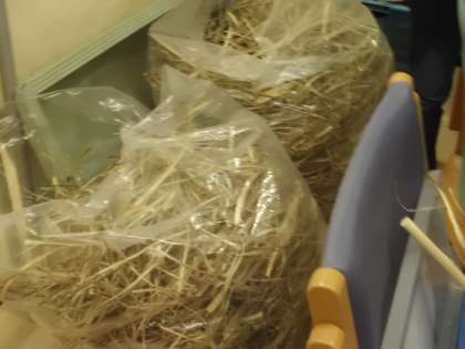 紙すきを終えた児童から,ケナフを見たり,乾かして小さくしたもの
