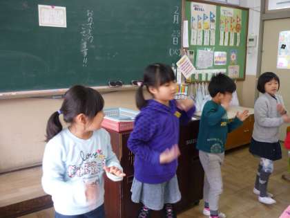 3月10日のわくわくお別れ会に向けて,準備・練習も着々と進んでいます。今日は,各グループ同士がお互いの発表を見合って,「もう少しこんな工夫をしたらどうかな。」とアドバイスをしました。本番が楽しみですね!!
