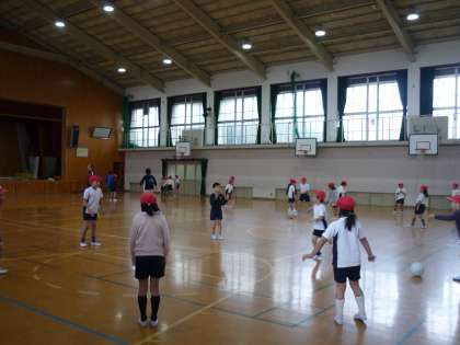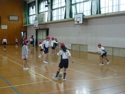今週から体育の時間に「ボールけりゲーム」の学習が始まりました。今日は,チームごとにパスを回す練習をしました。声を掛け合って相手のことを考えてボールを蹴ることや,どうしたらボールを上手に蹴れるかなどアドバイスをし合って一生懸命に取り組むことができていました。明日は運動場に出て,思いっきり体を動かせるといいですね♪