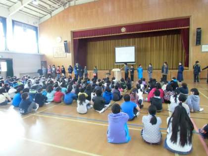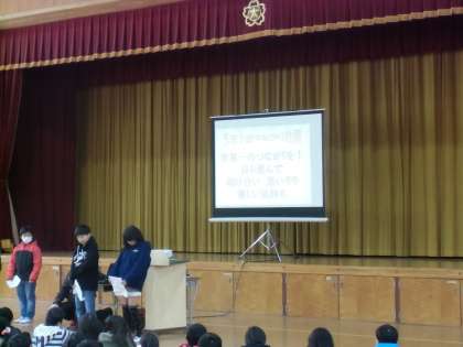 今日の朝会では,今年度のふりかえりとして,つながり目標の成果と課題を代表委員会の2人が発表してくれました。5年生として素晴らしく成長できた成果と,もっとよくなる課題をふりかえることができました。