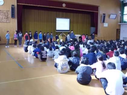 つながり目標について交流しました。各クラスの代表が4月に立てた目標について発表しました。頑張ったことや出来るようになったことをエピソードを交えながら全校児童に伝えました。