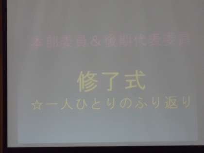 後期の代表委員と本部委員会の修了式をしました。児童会が進める「児童朝会」もすっかり定着してきました。本部委員の話し方も上手になり,低・中学年のよい手本となってきています。前に並んだ代表委員と本部委員は活動を振り返り,自分の感想を発表しました。聞く方もしっかり話を聞いていました。一年間の成果だと思います。