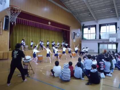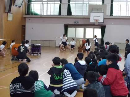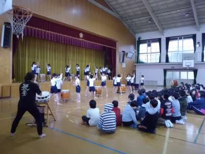 3月7日(火)の昼休み(1:10〜)に,体育館で和太鼓部の校内コンサートを開きました。