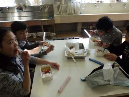 みんなでおいしくいただきました。ポテトとほうれんそうの卵まきが大好評でした。