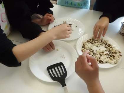 をつくって食べました。今回はチョコ味も食べて,みんな