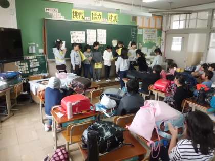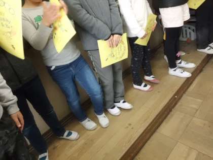 みんなの寄せ書きを,ひとりひとりに手渡して