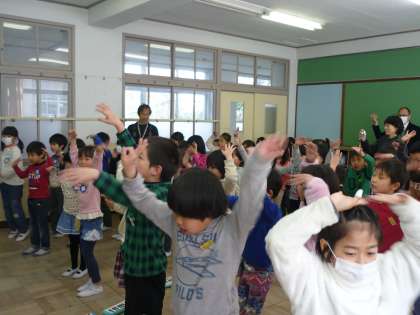 今流行りの「恋ダンス」をアレンジして,ダンスも披露しました。音楽大すきの2年生,1年生をリードしてノリノリです♪見に来てくださった校長先生も一緒に踊ってくださいました。