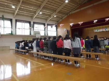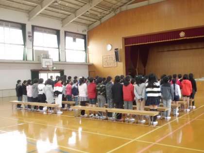 4・5・6年生が,体育館に集まり,入場から退場,国歌・校歌・