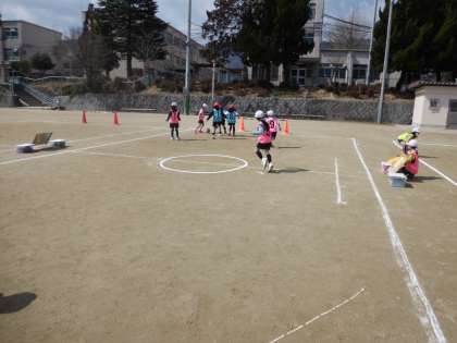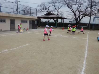体育でボールけりあそびを学習しました。みんなボールを追いかけ,味方にパスしたりシュートをしたりと元気いっぱいに行っています。試合が終わると「楽しかった!」「いい試合やった。」と嬉しそうに話していました。