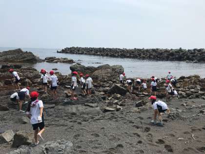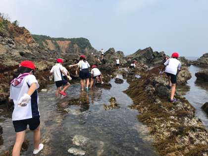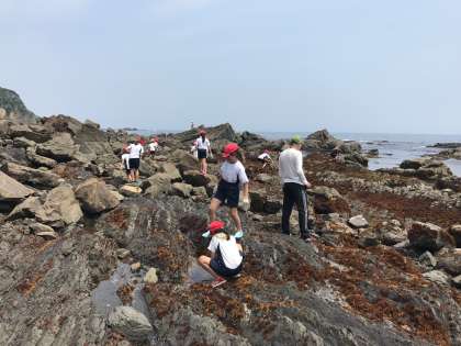 磯観察の様子です。今日は大変潮が引いており,絶好の条件で観察を行っています。