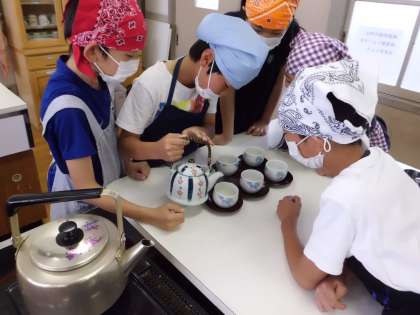 急須を使って,人数分のお茶を入れました。