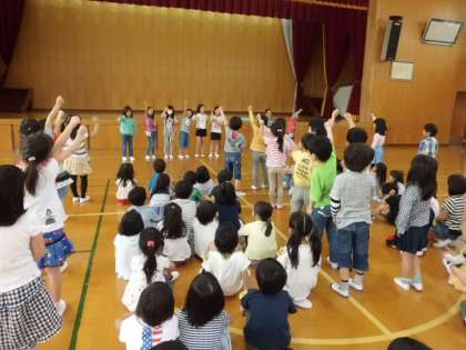 2時間目に、1・2年生合同で「わくわく集会」をしました。2年生がリードしてくれる中、みんなで踊ったり、グループに分かれて自己紹介をしたりしました。2年生からアサガオの種と素敵なメダルのプレゼントをもらいました。これからもわくわくグループで楽しく交流していくので、楽しみです。