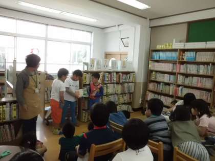 4時間目の読書タイムに図書館に行って読書をして,最後の方には本がかりの読み聞かせがありました。みんなに楽しんで読んでもらうためにはどうすればよいか一生懸命練習していた本がかりさん。がんばって見えやすい高さに本を持って読んでくれました。次は何を読んでくれるのか楽しみです!