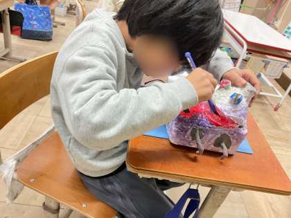 図工の学習では「空き容器の変身」に取り組んでいます。