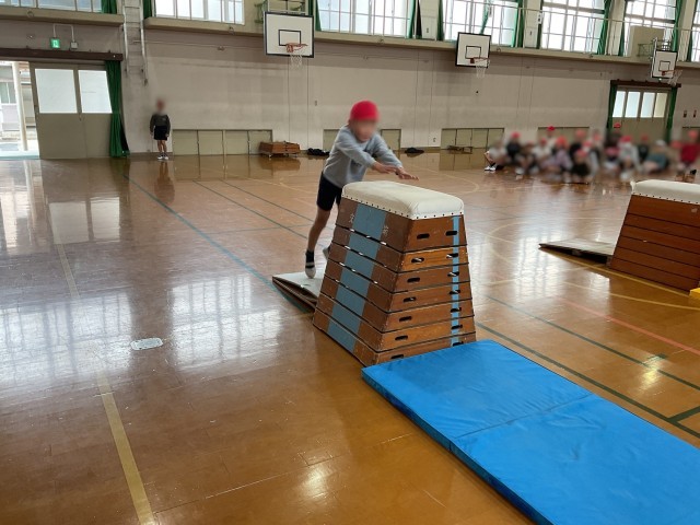 縦の開脚跳びにも挑戦です!