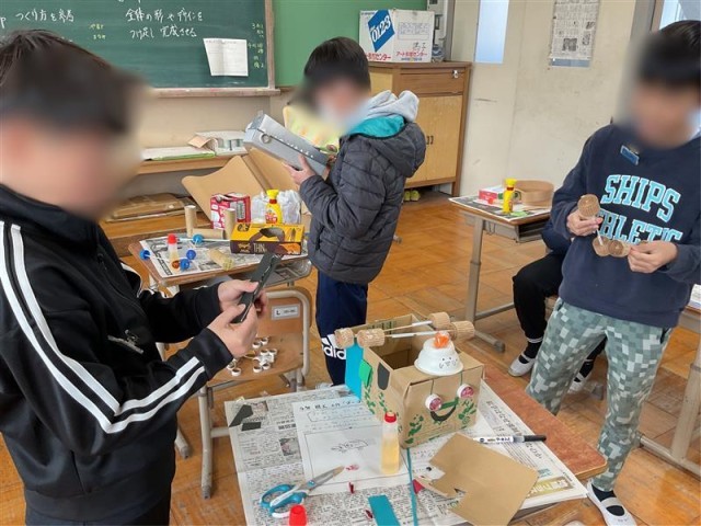 「タイヤはどうやって作るん。」「ここはこうしたらいいよ!」と友達同士で教え合う姿も見られ、楽しみながら制作に取り組んでいました。